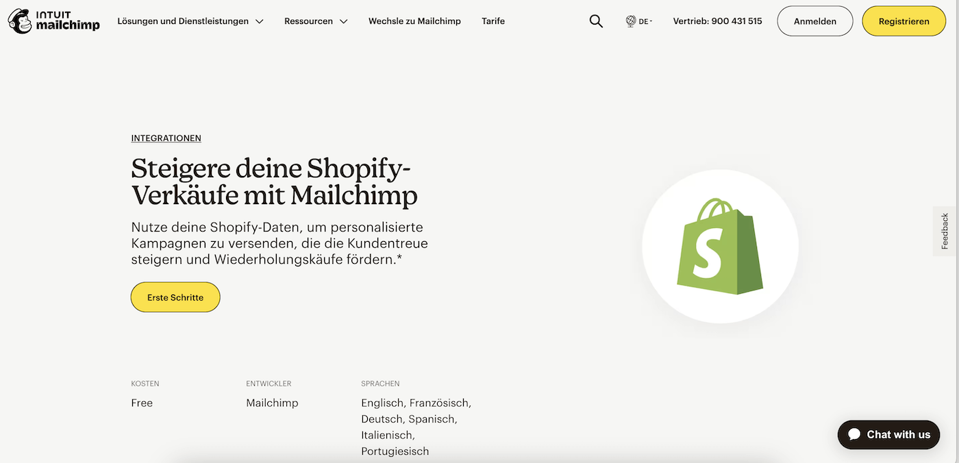 Viele User stellen uns die Frage, ob auch Mailchimp E-Mail-Marketing für Shopify anbietet. Die Antwort lautet „Ja“ – aber das war nicht immer so. Nachdem sich der Anbieter mit Shopify nicht über die Nutzungsbedingungen einig wurde, hat er einige Jahre lang keine Integrationsmöglichkeiten für Shopify angeboten. Einige User haben darauf hingewiesen, dass dieser Schritt zeitlich mit der Übernahme eines Shopify Konkurrenten durch Mailchimp zusammenfiel.