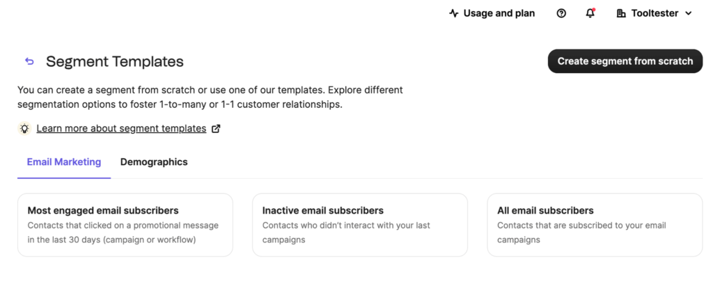 One drawback, however, is the lack of a tagging system, though you can somewhat emulate tagging through contact attributes. Oh, and it doesn’t let you segment subscribers based on country, which can be a limitation for localized campaigns.
