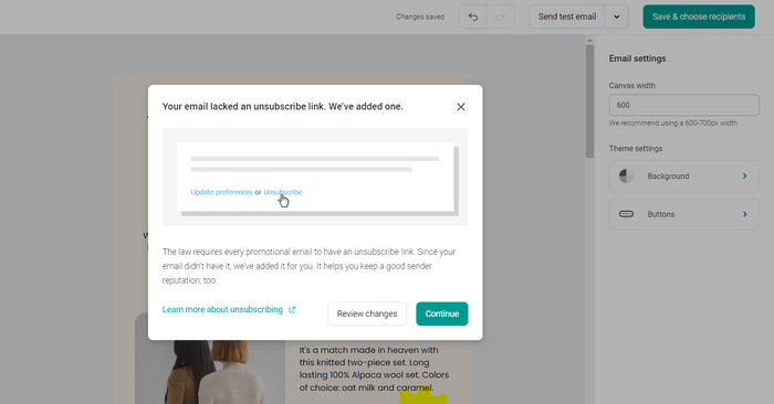 For example, if you try to remove the unsubscribe link from your email campaign in Omnisend, the platform will just add it right back for you.