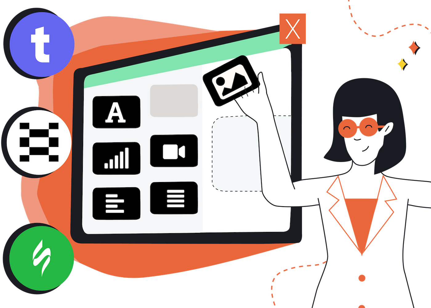 - Stock image library and basic image editing tools