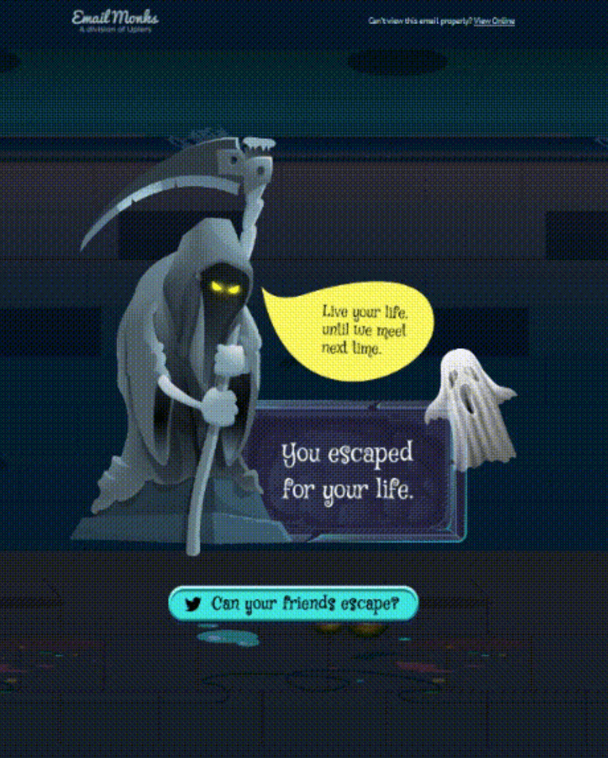 Create a Halloween scavenger hunt email, sending subscribers hidden “treats” in your emails. Or, send scratch cards in a series of emails leading to Christmas day, with each card revealing a new offer or discount code.
