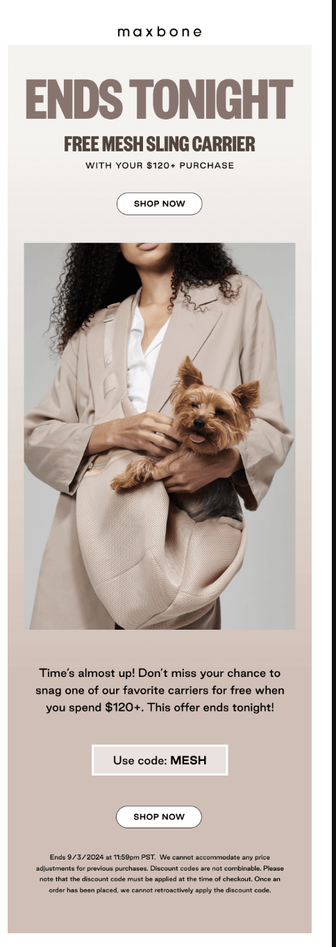 Combine urgency with key visual and copy elements—such as countdown timers, bold banners, action-driven language, and reminder-style messaging—to make your promotional emails work.
