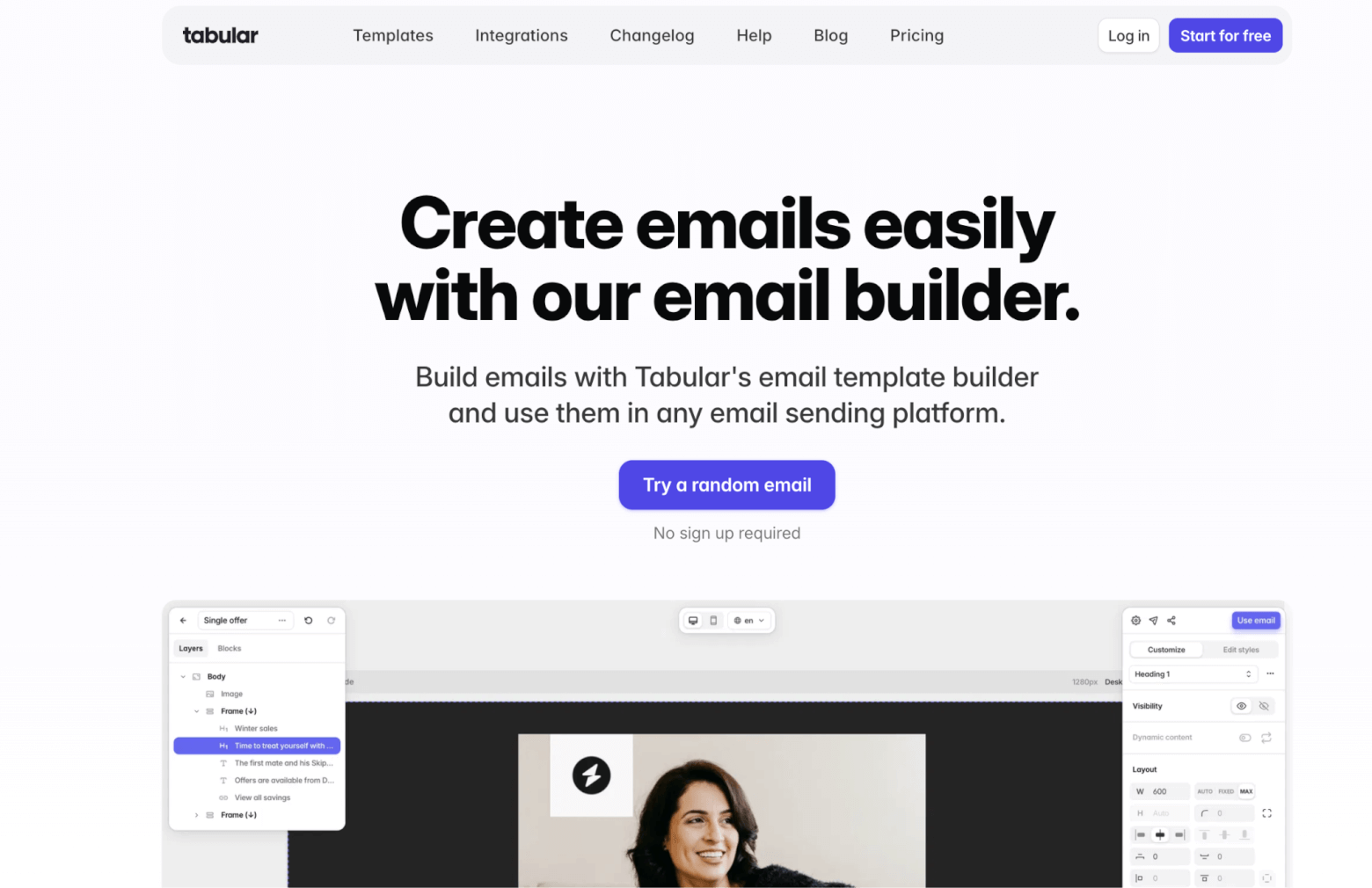 Tabular is one of the newer email template builders dedicated solely to creating responsive HTML email templates. You can pick from any of the 37 eye-catching email templates or the pre-built blocks, or establish pre-built “team blocks” to enforce design consistency and save time for your co-workers.