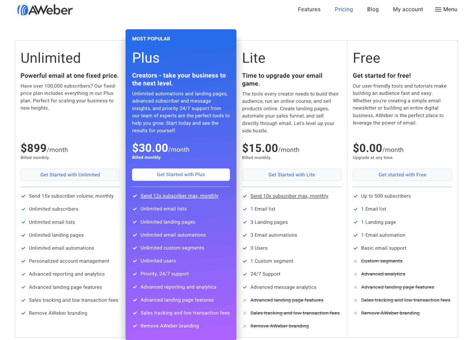 Comparing AWeber's Pricing Plans