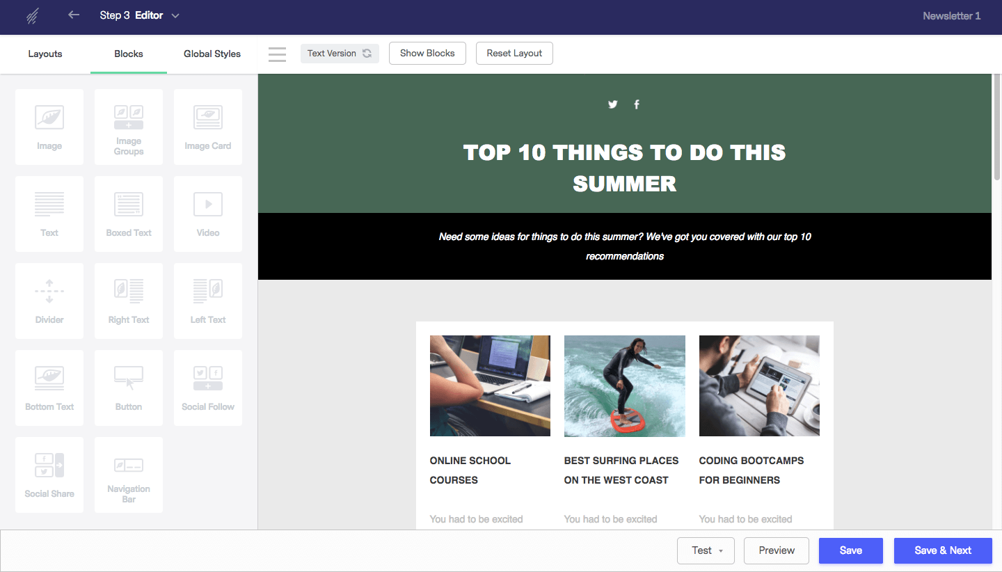 However, Benchmark doesn’t really offer any unique content blocks to make your emails stand out visually, which is something we’ve seen in most other ESPs. We also found the undo/redo buttons to be a little glitchy.