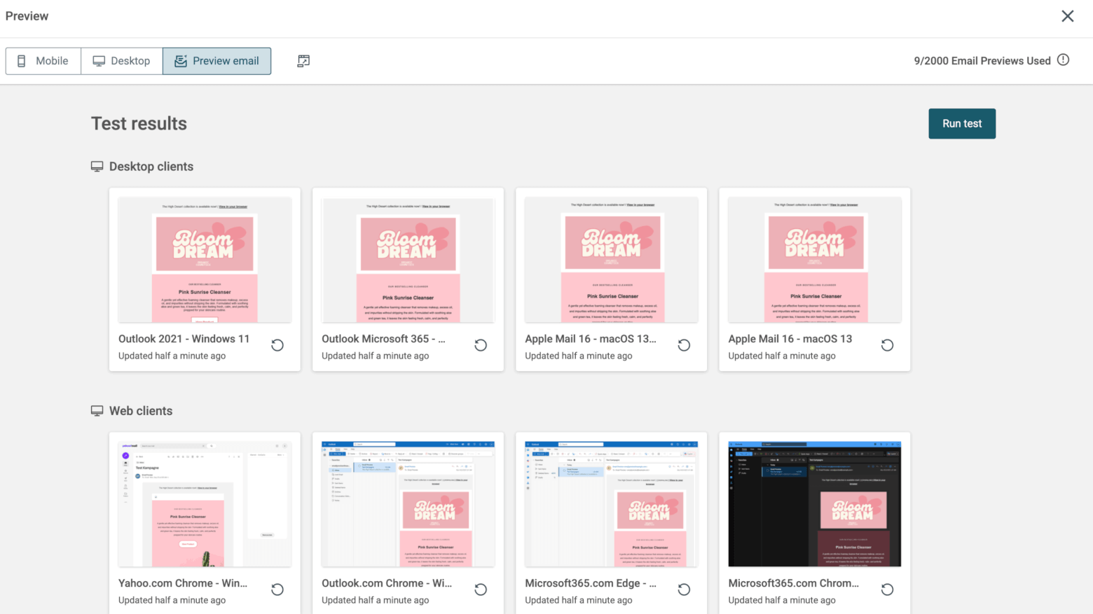 Mailjet stands out for its impressive design testing tools – something you won’t find in many other email platforms. Its Email Preview feature lets you instantly see how your campaign looks across dozens of devices and clients, from Apple Mail and Outlook to Gmail, Android, and iOS. You can even check how your design holds up in dark mode.
