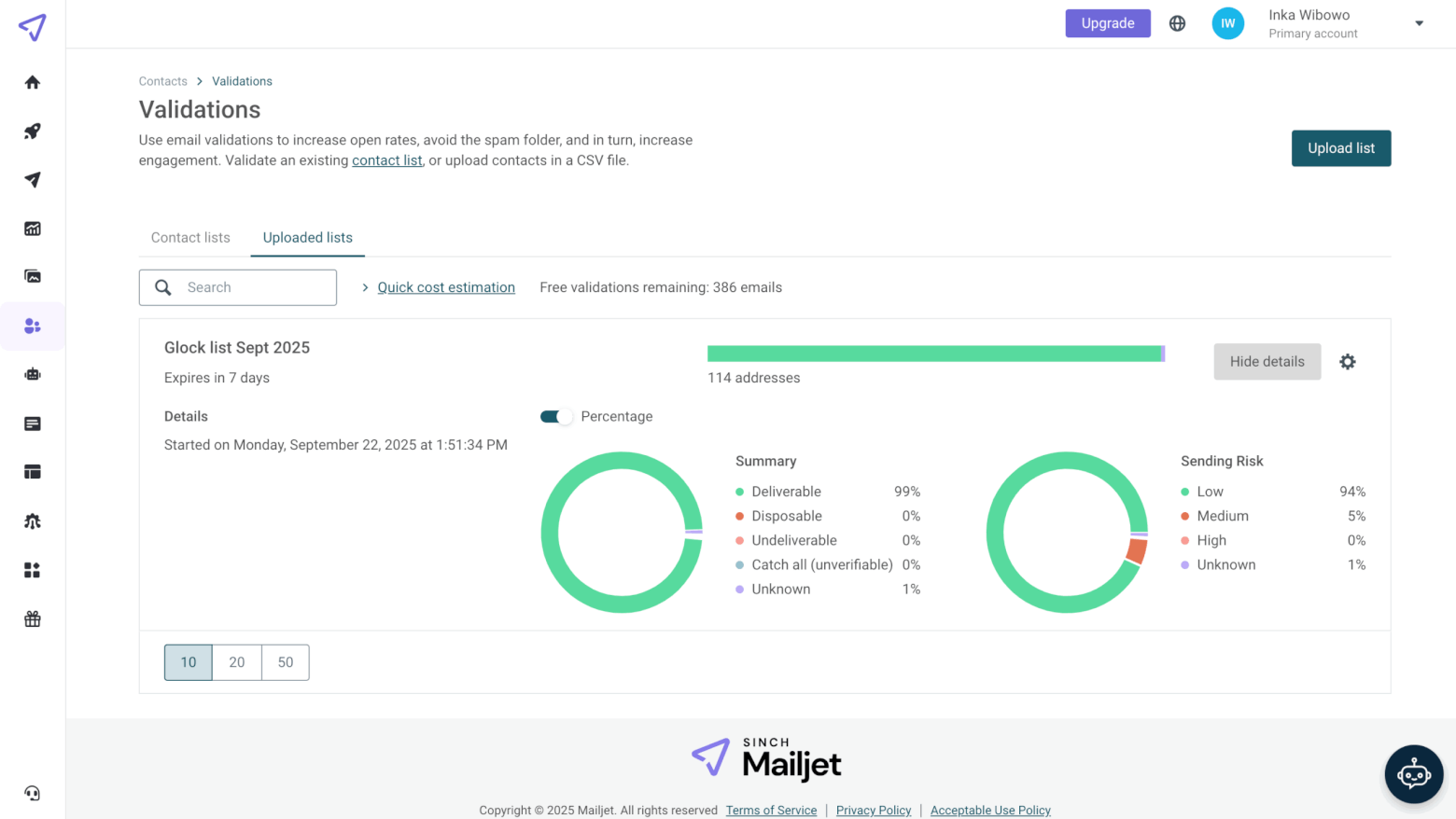 You get built-in list validation tools powered by Mailgun, and Custom plan users also benefit from access to Mailjet’s dedicated deliverability experts. The main missing element is a specialized deliverability score or dashboard, which limits more advanced visibility.