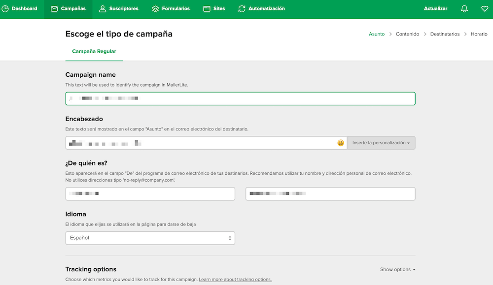 MailerLite ofrece una traducción y localización completa de su programa al español.